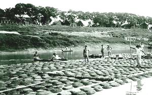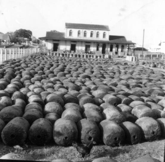 Tons of rubber bales wait for transport ships to carry them to be despatched to USA through Belem harbor.
